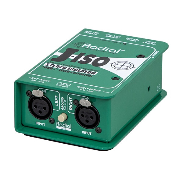 Radial Engineering J‑ISO — stereo +4 dB balanslaşdırılmış siqnalı −10 dB balanssız formata çevirən passiv konvertordur